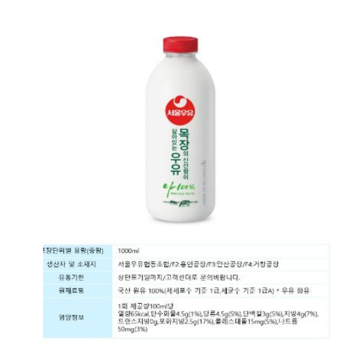 서울우유) 나100% 목장의 신선함이 살아있는 우유 1000ml