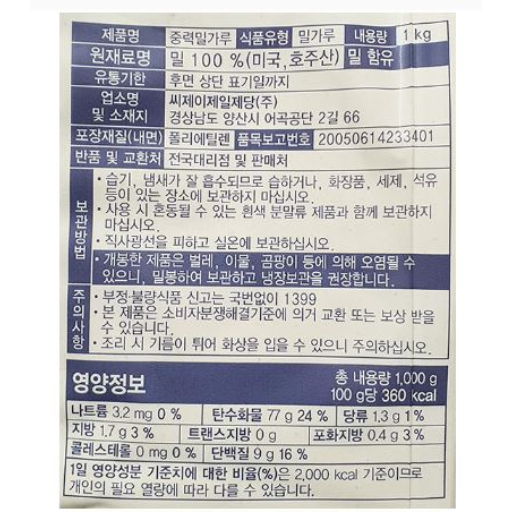 백설) 밀가루 1kg 4종 택 1