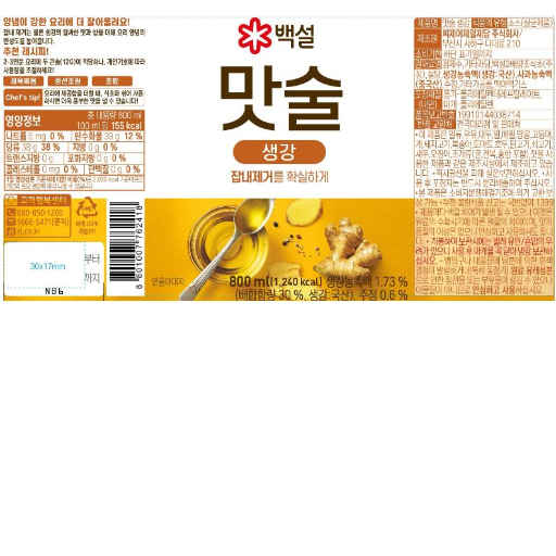 백설) 잡내 제거를 확실하게 맛술 생강 800g