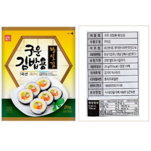 한성기엄) 구운 김밥용 왕실김 20g (10매)