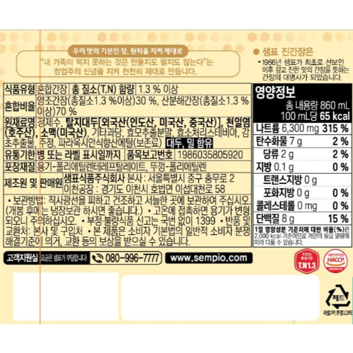 샘표) 언제나 함께 해온 그 맛 진간장 금F3 860ml