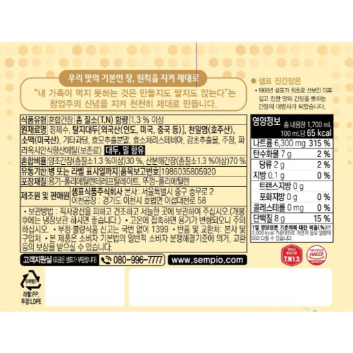 샘표) 언제나 함께 해온 그 맛 진간장 금F3 1.7L