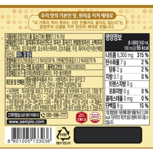 샘표) 언제나 함께 해온 그 맛 진간장 금F3 500ml
