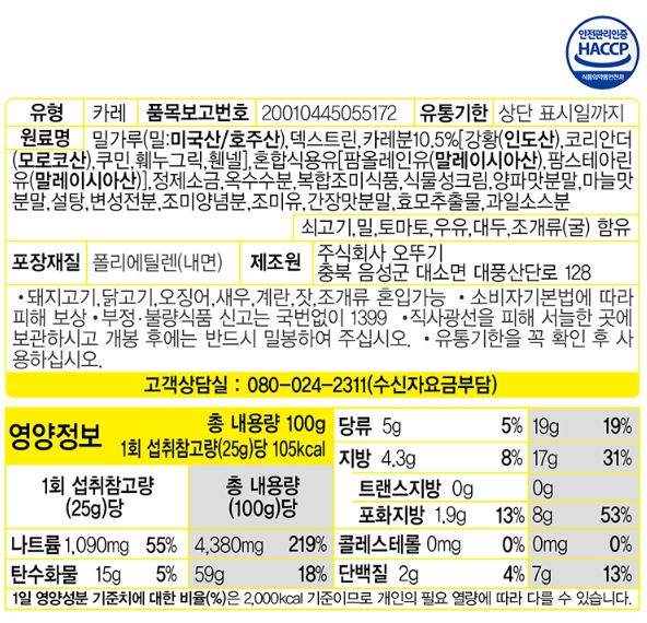 오뚜기) 오뚜기 카레 100g (4인분) 3종 택 1