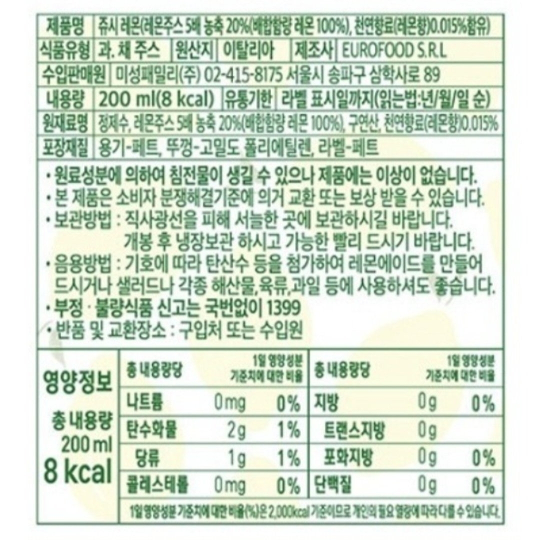 juic) 농축액 과채주스(이탈리아)200ml 2종 택 1