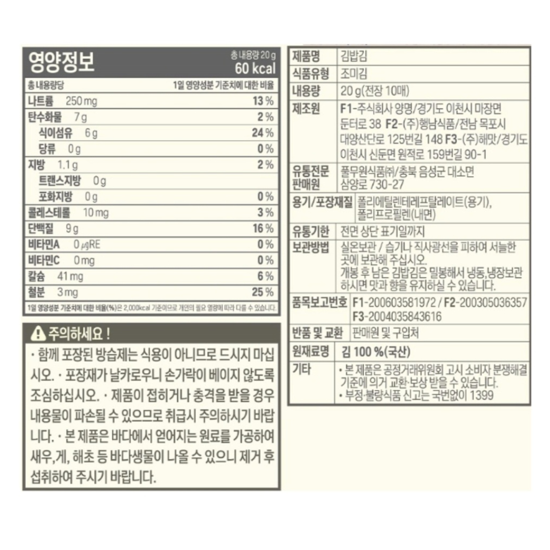 풀무원) 네번구워 향긋한 김밥김 20g(전장-10매)