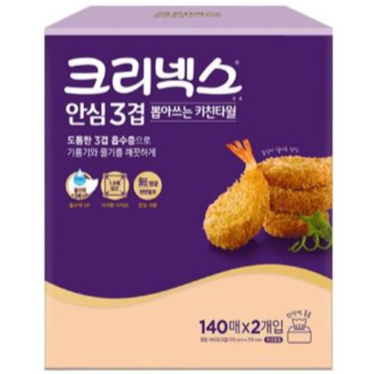 유한킴벌리) 크리넥스 안심 3겹 뽑아쓰는 키친타올 140매×2개입