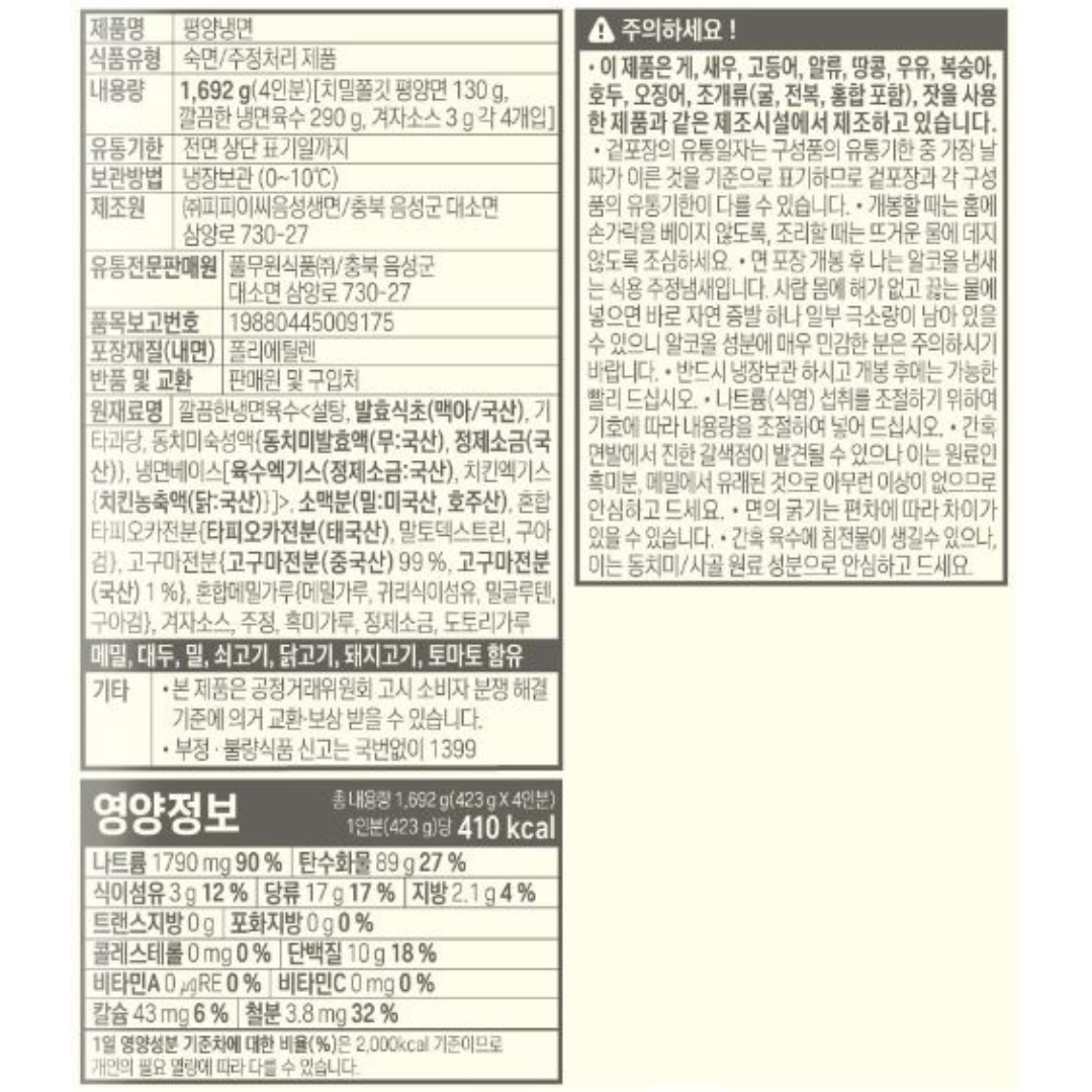 풀무원) 평양 물냉면 1692g (4인분)